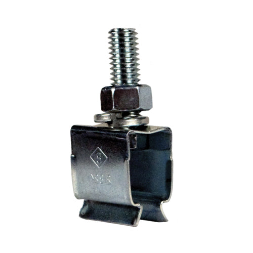 This is a spring steel hanger clamp that does not come equipped with an insulator. Hanger clamps are designed to grip tightly onto 8-bar conductors in order to achieve stability and support.