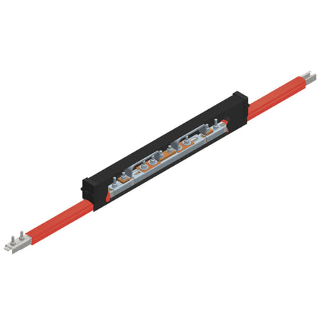 This is an expansion section with a splice installed. This section has a medium heat cover (red), and is rated at 100 Amps. This is to be used at structural expansion joints.