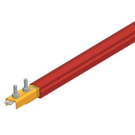 This is a 160 Amp copper conductor bar with splice installed. This bar has a medium heat cover (red).