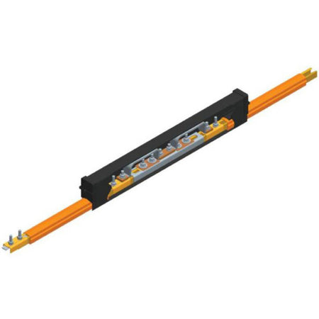 This is an expansion section with a splice installed. This section has a standard phase cover (orange), and is rated at 250 Amps. This is to be used at structural expansion joints.