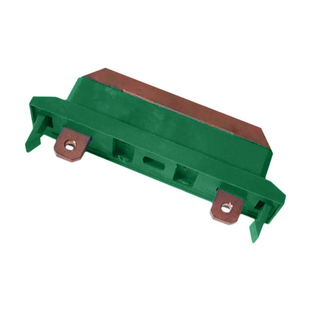 This is a wear-resistant, durable, copper graphite collector shoe and holder for Safe-Lec 2® 50 Amp and 100 Amp earth (ground) collectors. This model has a weight of 0.07lbs (0.03kg) and is green in colour.