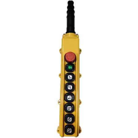 This series can be configured in 1-10 button designs, all in a singular column. This model is made of wear and impact resistant materials to ensure it survives any and all environments. Additionally, the silicon rubber pendant buttons protect against moisture and dirt.