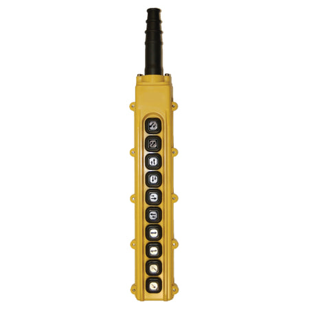This series can be configured in 1-10 button designs, all in a singular column. This model is made of wear and impact resistant materials to ensure it survives any and all environments. Additionally, the silicon rubber pendant buttons protect against moisture and dirt.