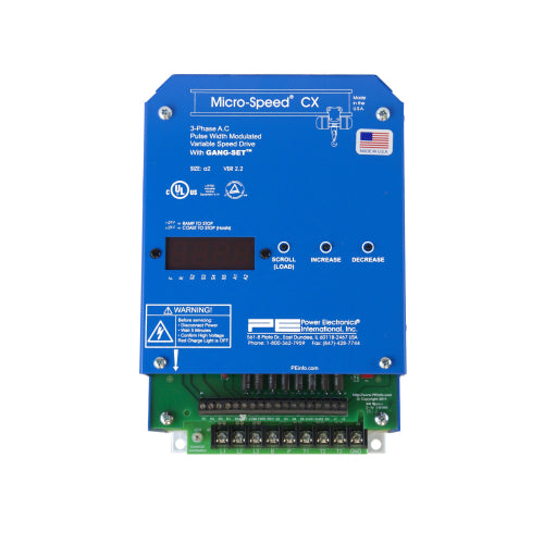 PE’sMicro-Speed CX series is engineered for heavy-duty applications that require precisemotor speed control such as monorails, trolleys, cranes, and hoists.