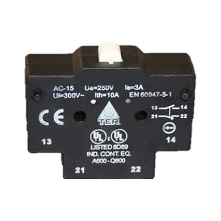 This is TER’s limit switch that is compatible with DINPosition Switches. This is a normally open (1) and normally closed(1) snap action switch.